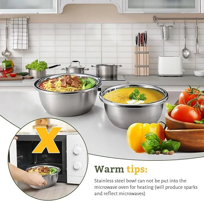 One set solves all food grade stainless steel basin, complete in size, proficient in everything, and versatile.It can be heated by induction cooker, flat-bottom design, and can be heated on induction cooker as needed.