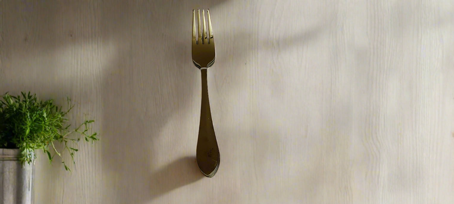 Golden Cutlery set for 6 person serving includes: 6 desert spoon 6 baby spoon 6 tea spoons 6 forks 2 punja and 2 serving