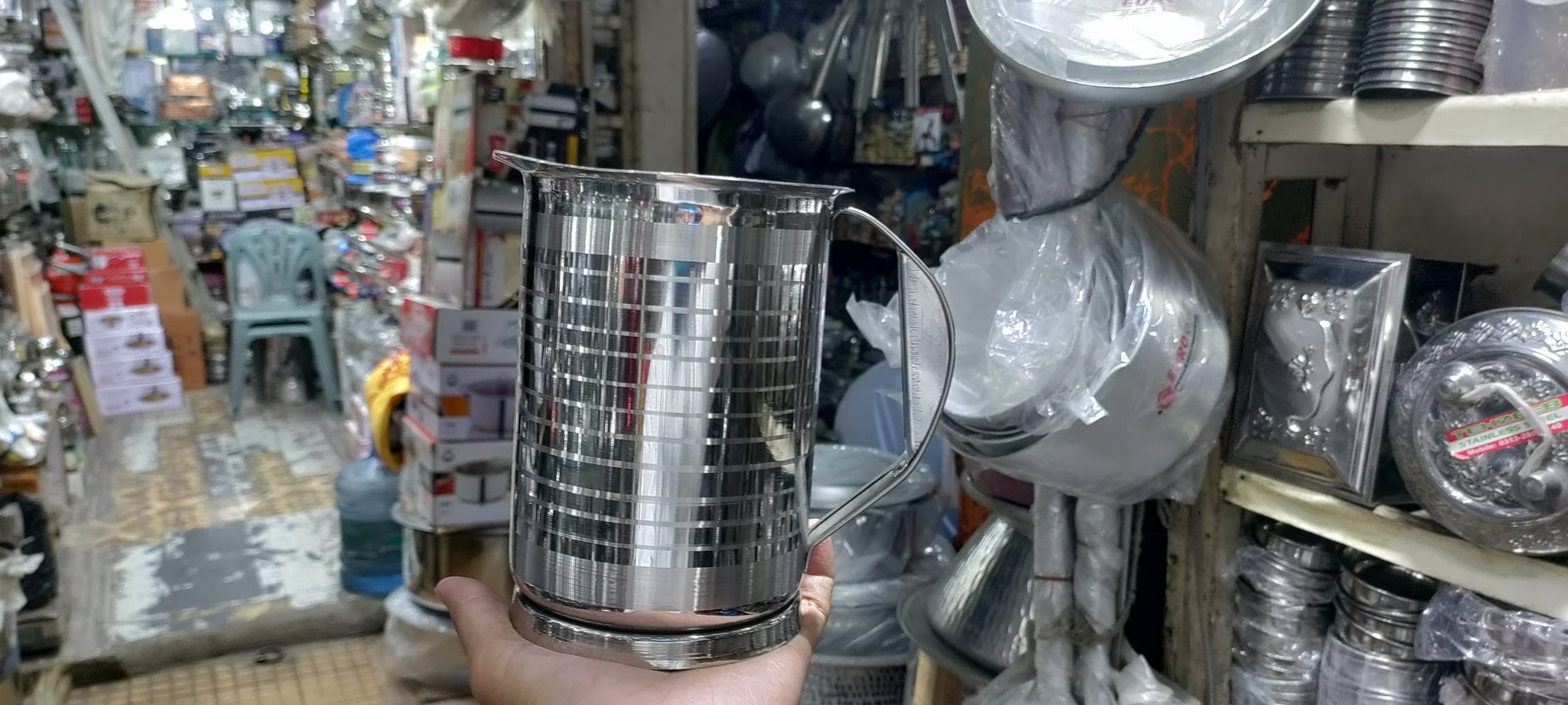 اس خوبصورت **اسٹیل واٹر سیٹ** کے ساتھ اپنے کچن کے سامان کے مجموعہ کو اپ گریڈ کریں جس میں ایک پائیدار جگ اور چھ مماثل شیشے ہیں۔ اعلیٰ معیار کے سٹینلیس سٹیل سے تیار کردہ، یہ **جگ گلاس سیٹ** روزانہ استعمال اور خاص مواقع کے لیے بہترین ہے۔ چاہے آپ مہمانوں کی میزبانی کر رہے ہوں یا گھر میں پرسکون کھانے سے لطف اندوز ہو رہے ہوں، یہ **واٹر سیٹ** عملی اور انداز کو یکجا کرتا ہے۔