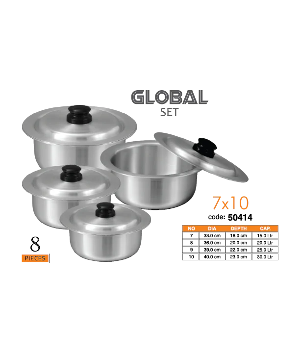 The Sonex Stainless Steel Global Set is a durable, health‑focused cookware collection designed for everyday cooking and long‑lasting performance. Made with high‑quality food‑grade stainless steel, this set brings together essential pots for versatile cooking — from boiling and simmering to deep cooking and large family meals.